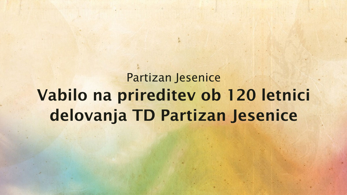 Društvo Partizan Jesenice vabi na svečano prireditev ob 120 letnici delovanja telovadnega društva Partizan Jesenice, ki bo v soboto, 30. 11. 2024 ob 18.00 uri v prostorih društva – Cesta železarjev 1.